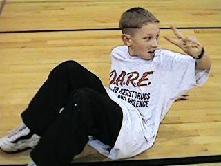 How about some exercise to relieve a bit of stress. No one needs harmful or addictive substances to combat stress when a game or exercise with friends will do the trick. Here, sixth graders do a relay crab race as part of their D.A.R.E. program. Officer Butler led the exercise session.