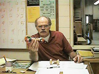 Mr. Nelson's 8th Grade Industrial Technology exploratory class has a unit for making and racing mousetrap powered model cars. After completing the races with their cars made from kits, students are invited to construct a model car more from scratch. Students must cut the shapes as well as glue them together. Pictured below are some of the students with their decorated cars.