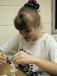 Amanda, the eventual winner at 38 inches, plans her three sided tower.
