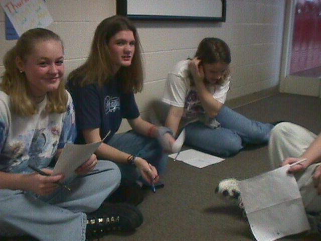 Ogden students trying to see how many Spanish words they can come up with from "Prospero Ano Nuevo": (Emilia) Jacqui Higgins, (Constanza) Mandy Garman