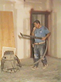Concrete is being poured, wallpaper is being hung, the wiring crew is working,