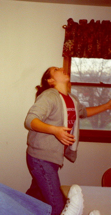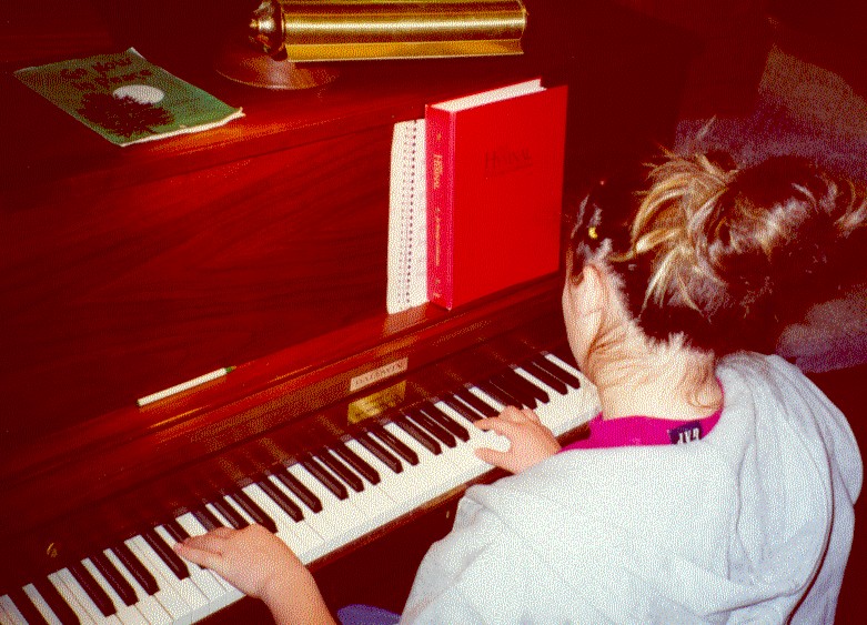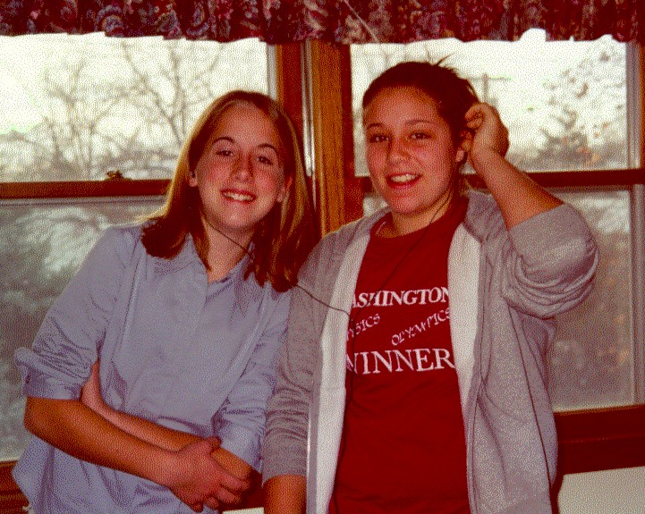 Rebecca and Ally listening to Matt's headphones at church on Sunday
