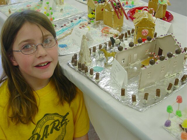 It's the time of the year when the 6th graders at South Hamilton use their imagination and construction skills to complete a gingerbread house and yard. The houses are formed around empty milk cartons with graham crackers pasted with icing. These are then decorated with sweet decorations as dictated by the creativity of each student. It is rumored that during this construction phase, students don't need much additional sugar at supper time to meet the minimum recommended daily requirements.