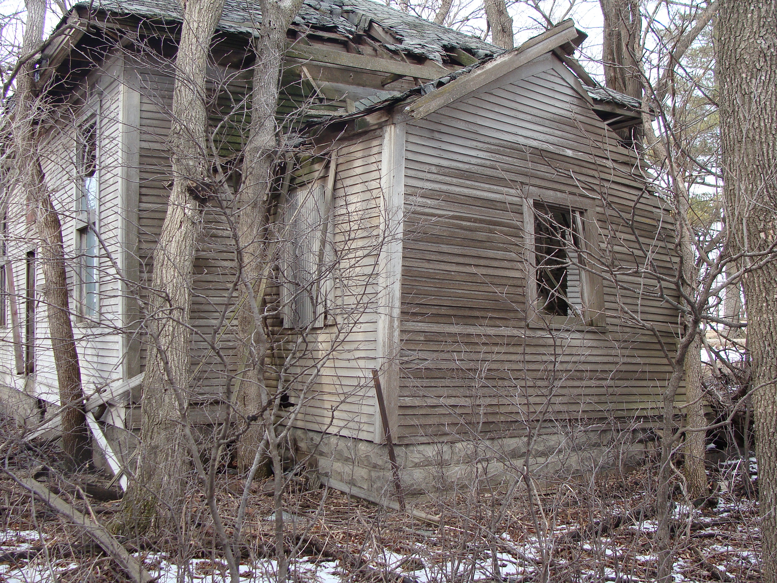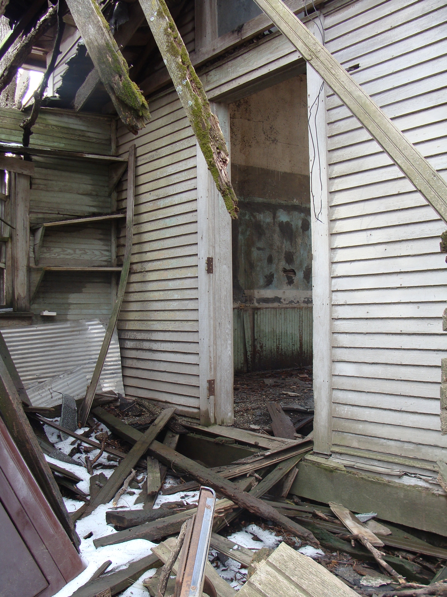 Looking into the classroom area from the front vestibule, where coats may have been hung