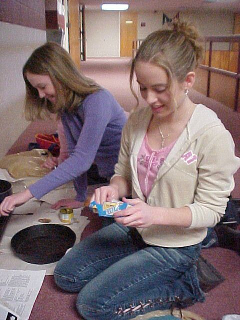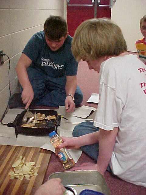The Spanish I students prepared authentic dishes ranging from soup to side dishes to main entrees. Once all recipes were prepared, the students had the opportunity to taste test all of them. The cooking day allows the students to prepare real Mexican dishes and change their misconceptions about what the cuisine really is like. Above Ana and Dina prepare Papa Chirriones.
