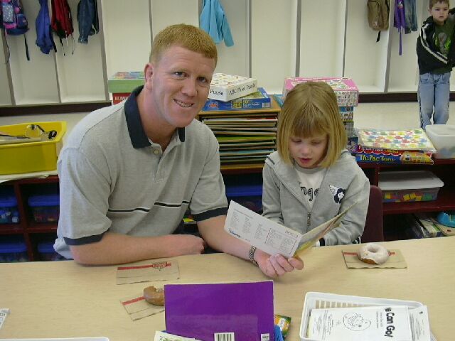 South Hamilton Kindergarten students celebrated Donuts with Dad day on Wednesday, March 26. Children in Mrs. Peterson's kindergarten class are shown enjoying donuts and fun activities with their dad or guest.