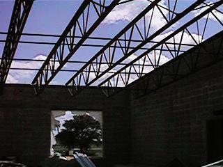 multi-purpose room trusses in place, but still open to the weather