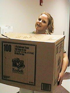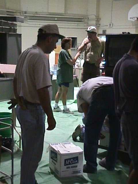 Patrons and friends of South Hamilton School volunteered their time and energy on Saturday, August 21, to clean and move the equipment necessary to start school on time at our new elementary school. A large crew from all across the district emptied the old gym which had been piled high as a storage area. Months of construction dust was cleaned from teaching materials as crews began hauling in trip after tiring trip to the new classrooms. Others assembled and carried new furniture from the bus barn to the appropriate rooms. Since construction will continue as classes begin, some teachers will not have a room of their own for a while, so their gear was removed so that the gym can again be used as an exercise area and lunch room until the new lunch room and kitchen are completed.