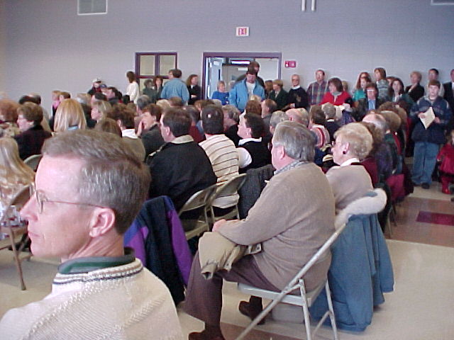 It was standing room only in the lunchroom as patrons came to see their new school dedicated. Patrons not able to fit in the large room were standing out in the hallway.