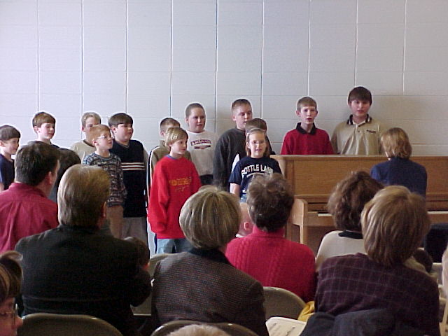 Elaine Gansen, K-6 Vocal teacher, and a number of elementary students set the mood for the afternoon by singing the song based on South Hamilton Elementary School slogan, The Start of Something Big.