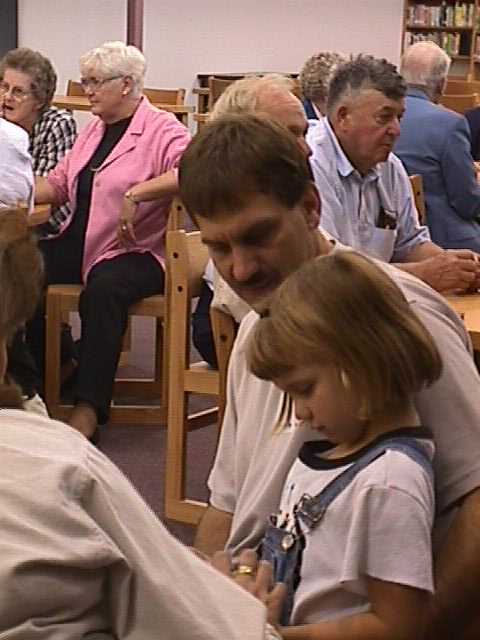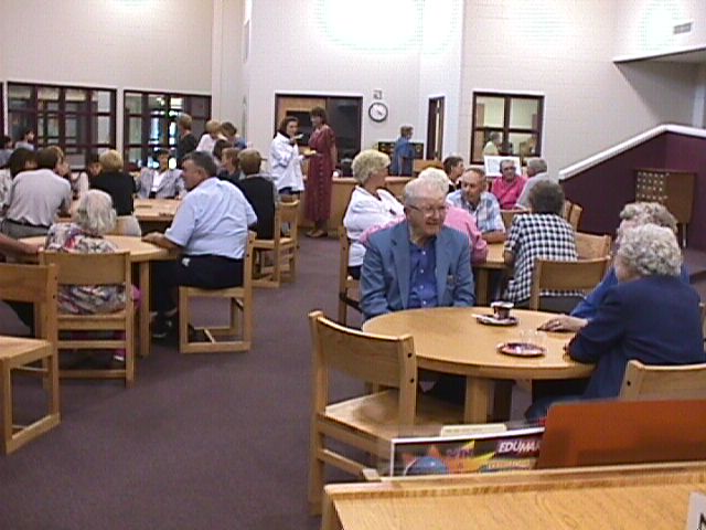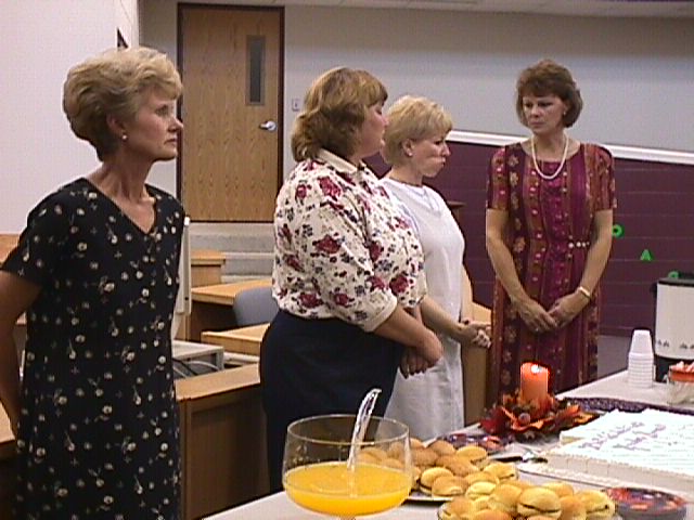 Patrice Teigland, Paula Ervin, Joan Walker, Judith Greve, Karla Taylor, Sandy Hertzke, Caroline Peterson, and Laverne Iverson helped to serve sandwiches, punch, and cake to the guests. This was the first function for the new Media Center. On Monday, the center will be open to students of the new elementary school.