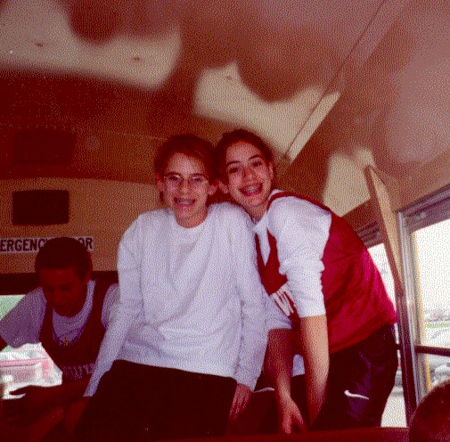 Sarah and Ariana on the bus on the way to one of our meets.