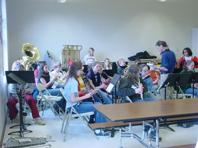 Thirty five eighth grade instrumentalists spent their lunch and seminar