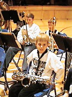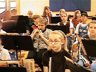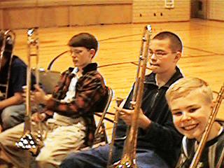 For several years the sixth grade bands of Stratford and South Hamilton have gotten together to perform for each other and then to unite and perform as one ensemble. Some photos of the performers and audience follow. |