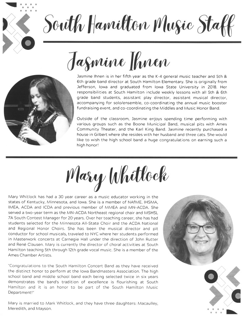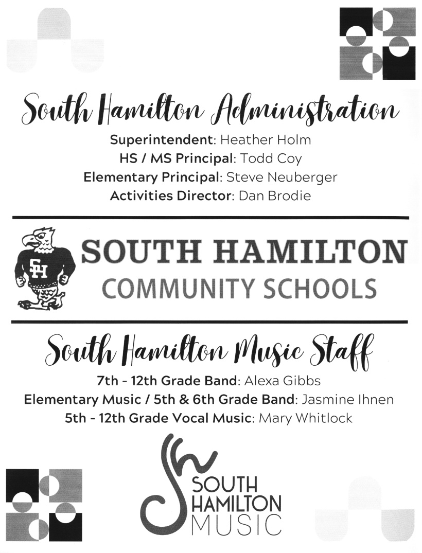 For easier reading, you may click to enlarge each page of the South Hamilton Band Concert Program.