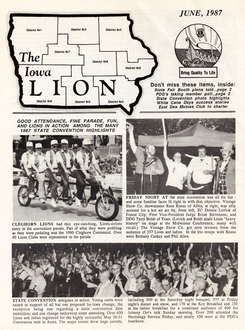 The Iowa Lion Magazine of June, 1987 carried many articles.