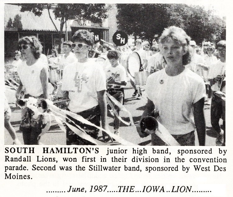 The next year, 1988, it would be the South Hamilton High School Band that marched in Ames for the 1988 Veishea Parade.