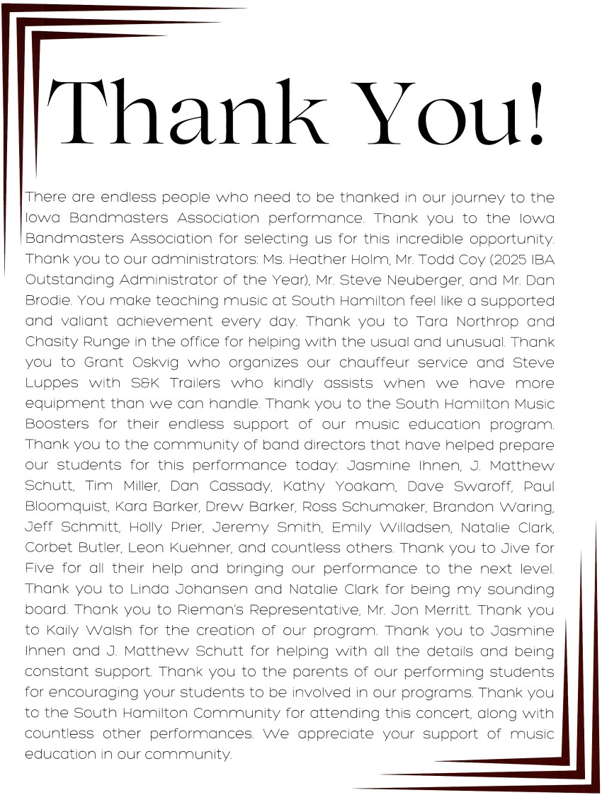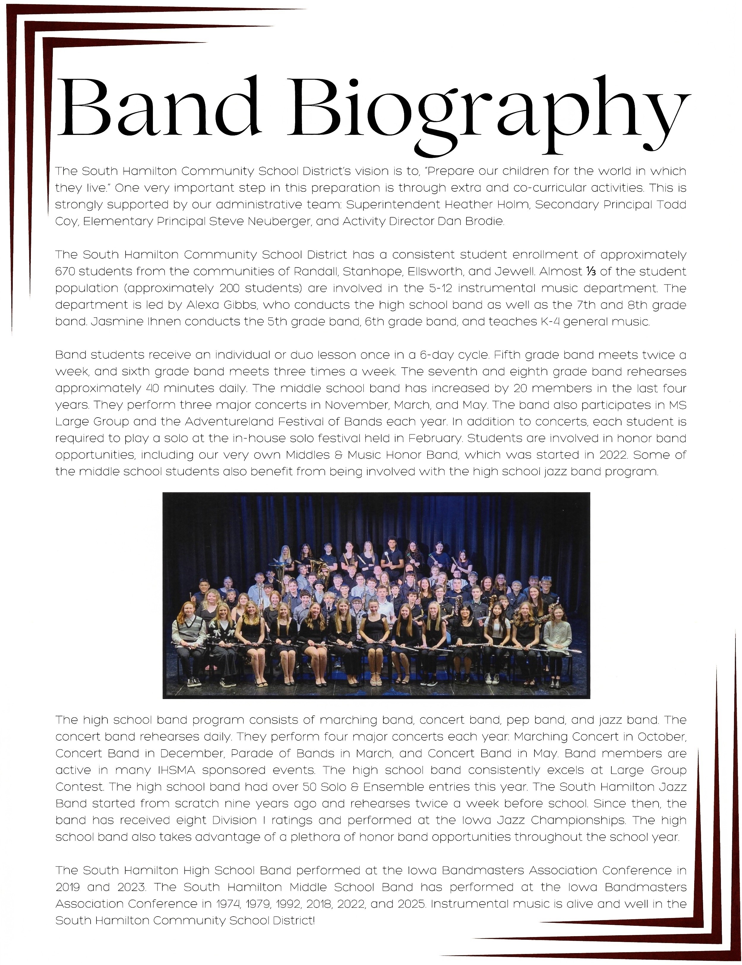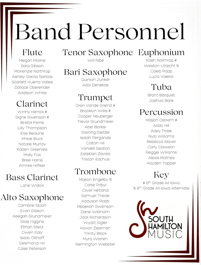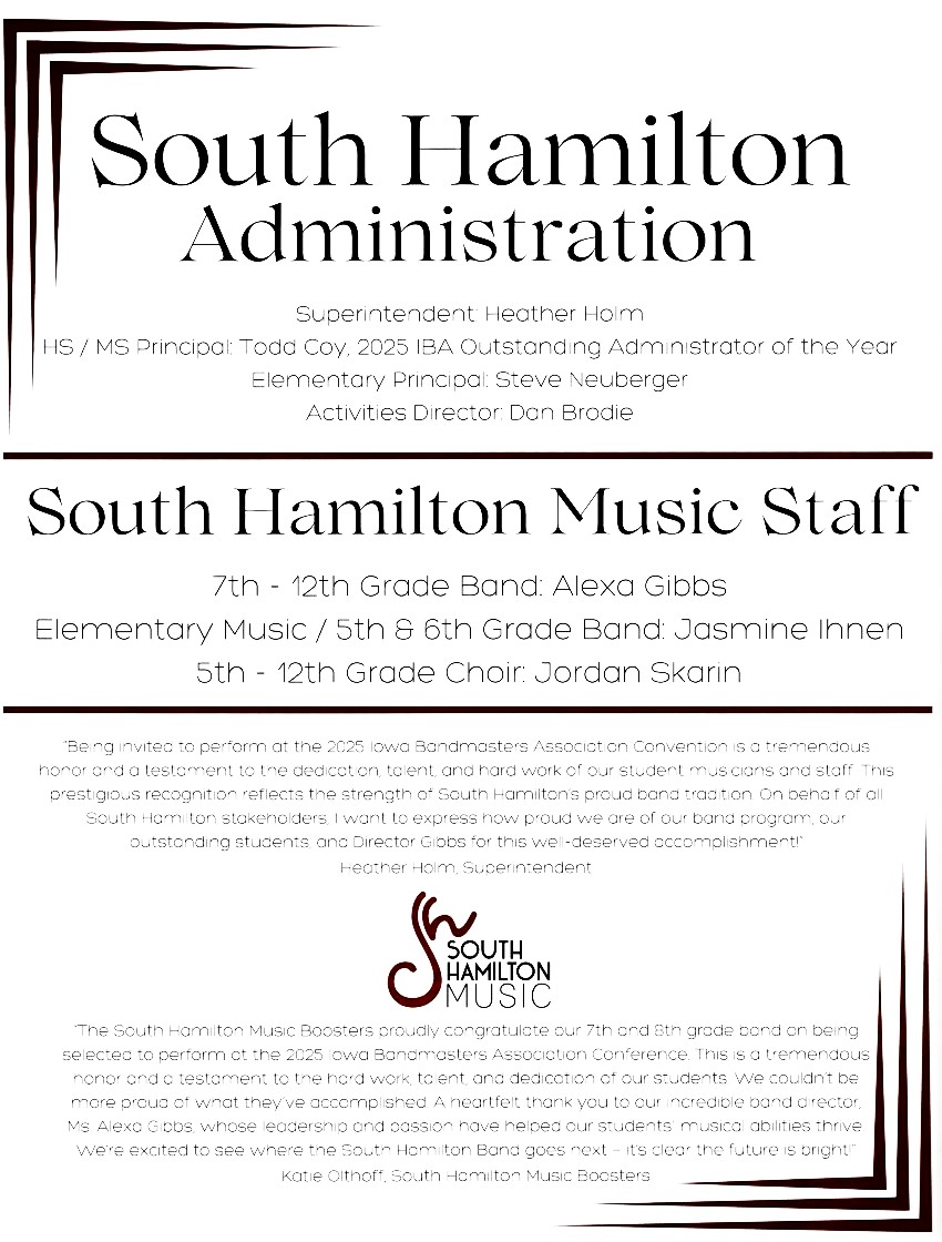 South Hamilton School Middle School band has again been invited to perform