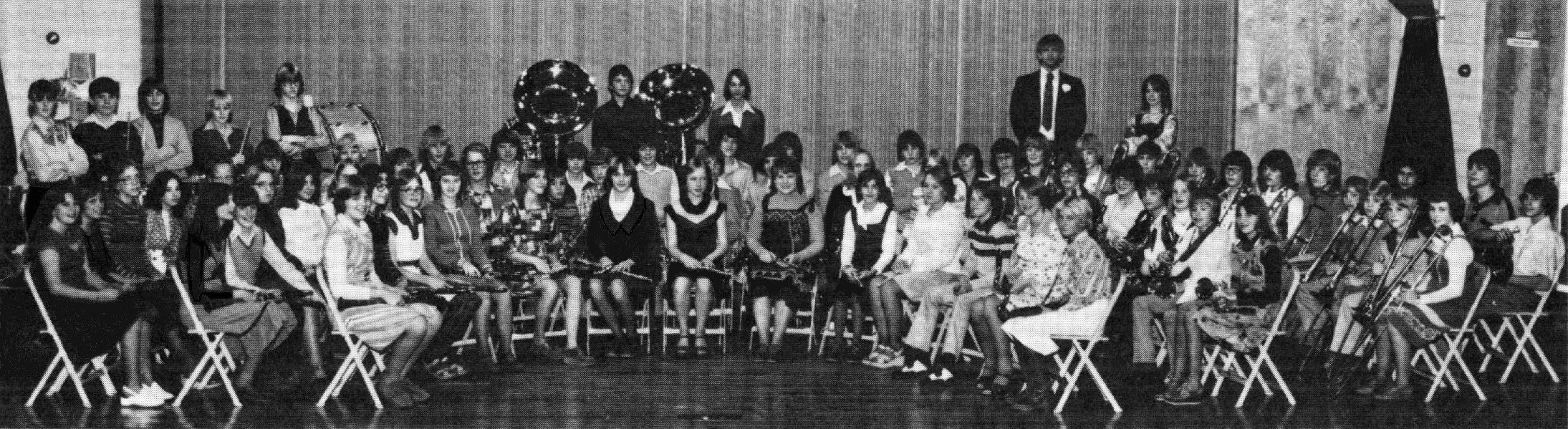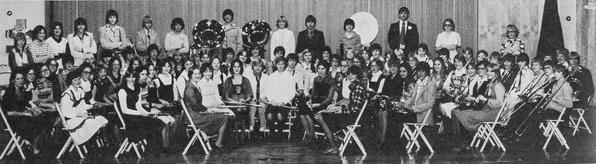 Row Four: Alan Watts, Kevin Cummings, Brent Bataille, Mike Sheesley, Curtis Arends, David Fisher, Lance Cornelison, Director Mr. Kilburn, Shari Withers, Clarence Hadaway, Doug Larson, Jerome Hadaway