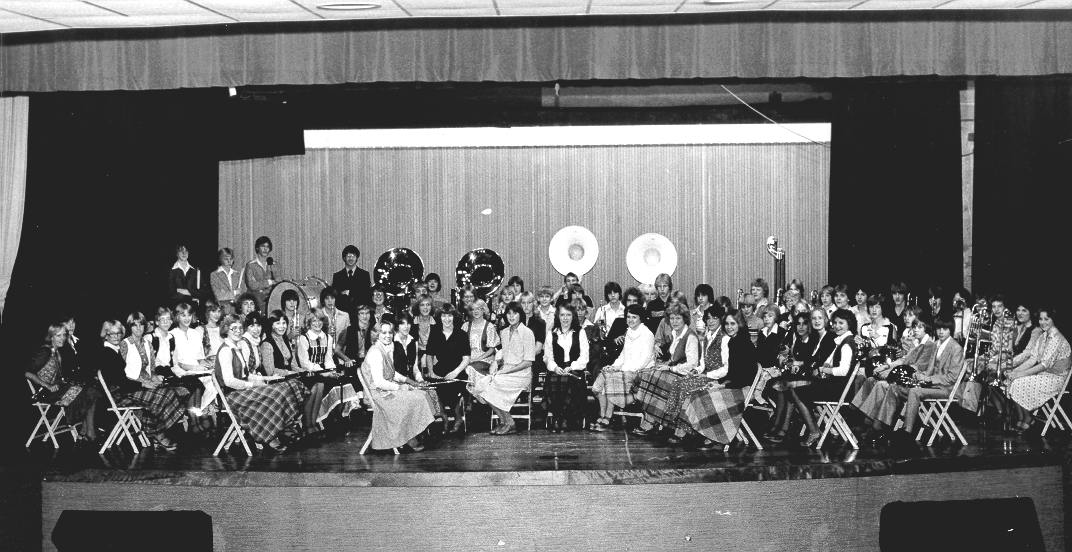 Row Four: Loree Larson, Jim Thayer, Allen Watts, Mike Sheesley, director Alan Spohnheimer, David Fisher, Brian Becthold, Lance Cornelison, Kent Erickson, Matt Carlson, Doug Jacobson, Scott Enderson, Reg Evans, Bryan Wicks, Kendall Jewell, Bob Espeland, Jerry Abell, Doug Munsen, Staci Kuhfus, Stephanie Hill