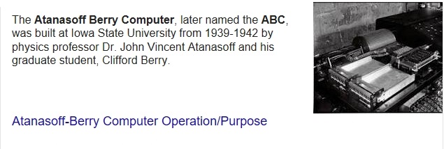 In the summer of 1941, John Mauchly, a physicist at Ursinus College just north of Philadelphia, visited Atanasoff in Ames to see the ABC. At that time, Atanasoff revealed to Mauchly detailed drawings, plans, theories, and the working model of this first computer.