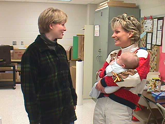 South Hamilton's 5th and 6th grade teachers have hosted a lunch time get-acquainted session so they could meet Seth James Halleland, new son of 5th Grade teacher Kathy Halleland. Seth was born on September 22, 2001. At that time he was 20.5 inches long and weighed 8 pounds, 3 ounces. There was time to visit, snack, and hold the baby before teachers needed to scramble back for the afternoon classes. Congratulations! Bruce and Kathy, on your new family addition!