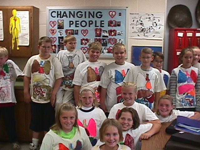 The sixth graders have been studying the organs of the body. To better understand their relative size and location, Mr. Vust uses shirt art as an assignment. Draw and color your organs on a white T-shirt. When you wear the shirt you know where the lungs, liver, stomach, and heart are.
