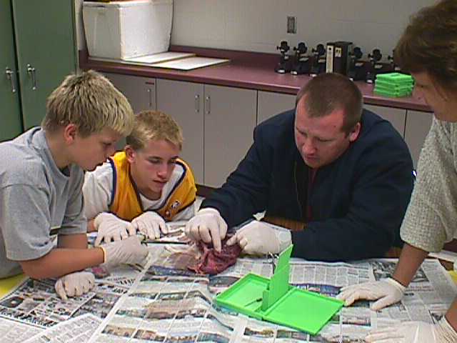 South Hamilton sixth graders under the leadership of science teacher Ivan Vust recently increased their understanding of the circulatory system by dissecting pig hearts. This was an activity where parents were invited to take part, too.