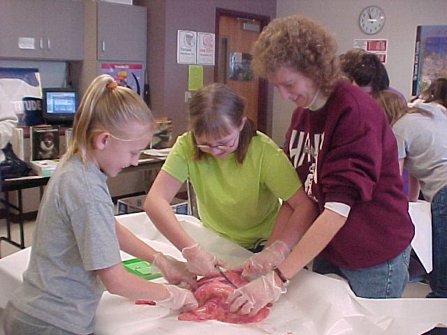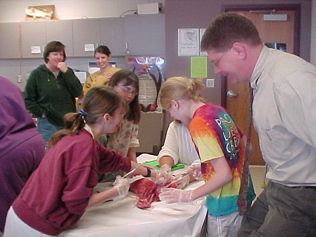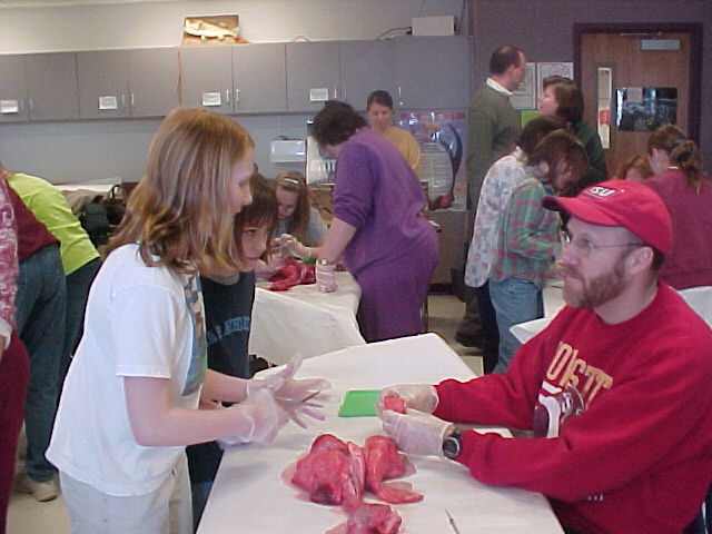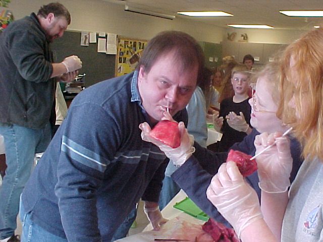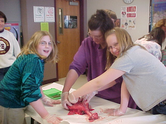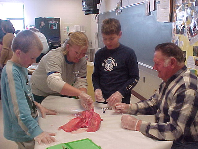 Mrs. Ullestad's 5th grade science classes learned about the respiratory system by dissecting lungs with the help of their parents. Some photos show students inflating the lungs with a straw.