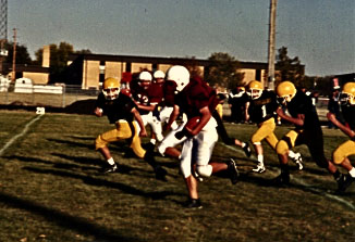 Alex Hertzke(11) runs away from the West Marshall defense.