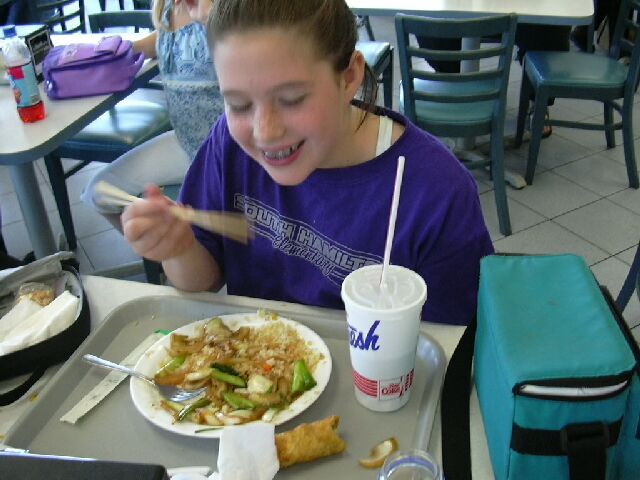 On April 3 the South Hamilton Elementary TAG students attended Frankenstein's Children at the Des Moines Civic Center. The play was presented by the Metro Theatre Company and was a vehicle to explore our "monstrous" emotions. The trip was partially funded by a grant from the Iowa Arts Council. Vanessa Roys' father went along as a chaperone. During lunch the students experimented with chopsticks and had a surprise guest -- Paiton Risetter's mother.
