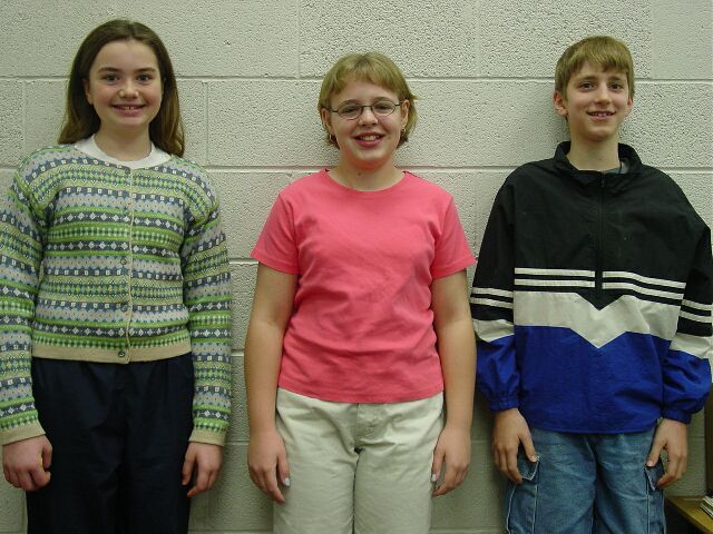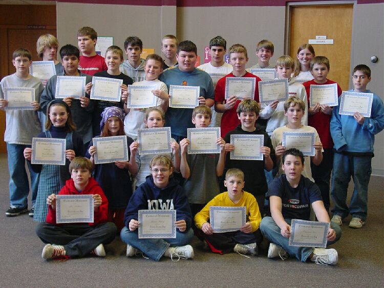 Eight graders included Ryan Baker, James Berry, Cody Greenfield, Amanda McGonigle, Jare Stubben, and Parker Watson.